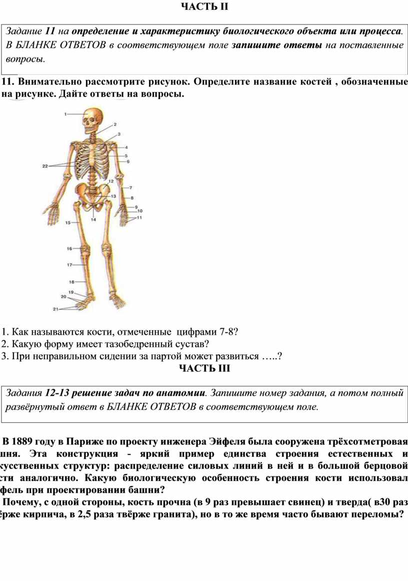 11. Внимательно рассмотрите рисунок. Определите название костей, обозначенные на рисунке. Дайте ответы на вопросы.