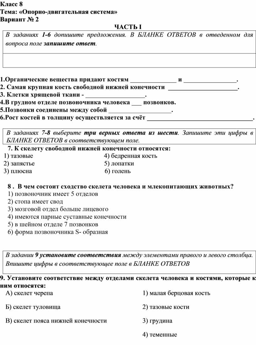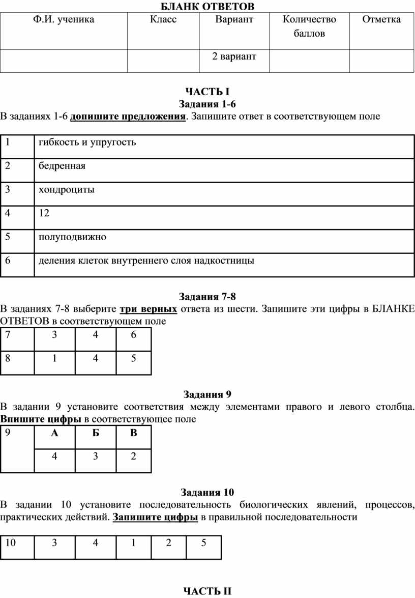 В заданиях 1-6 допишите предложения. В БЛАНКЕ ОТВЕТОВ в отведенном для вопроса поле запишите ответ. |