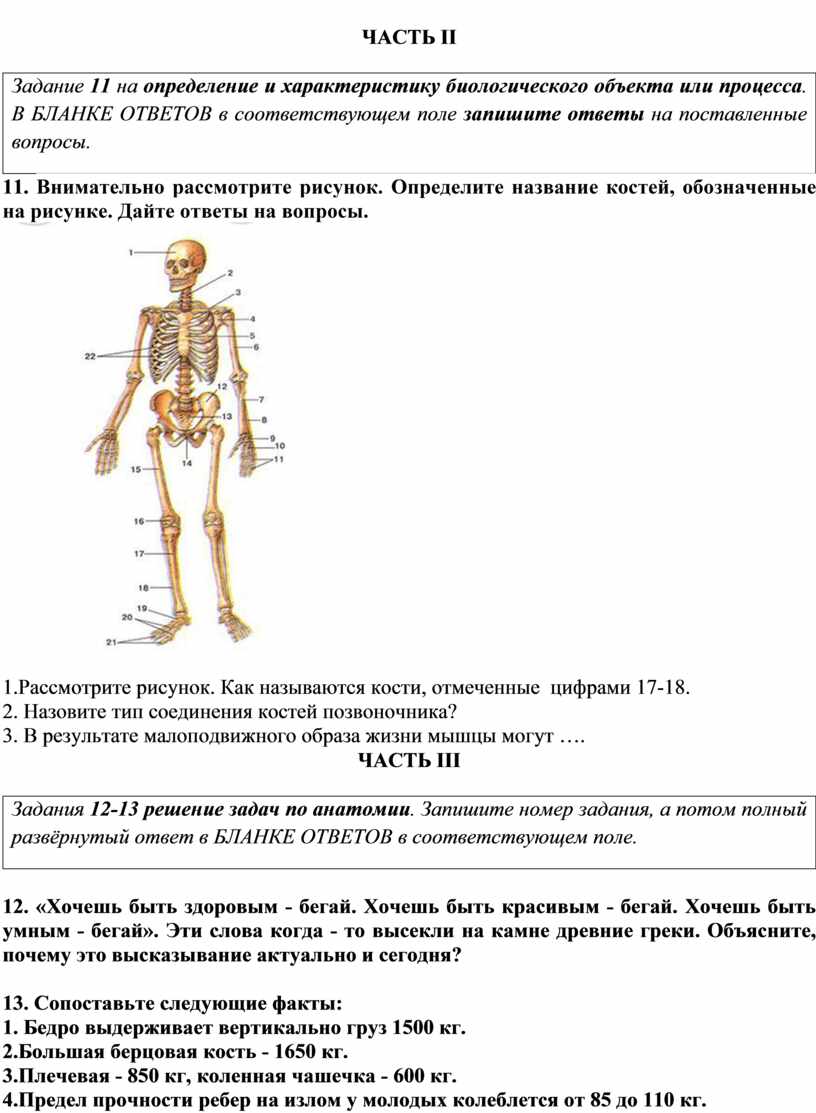 Задания 12-13 решение задач по анатомии. Запишите номер задания, а потом полный развёрнутый ответ в БЛАНКЕ ОТВЕТОВ в соответствующем поле. |