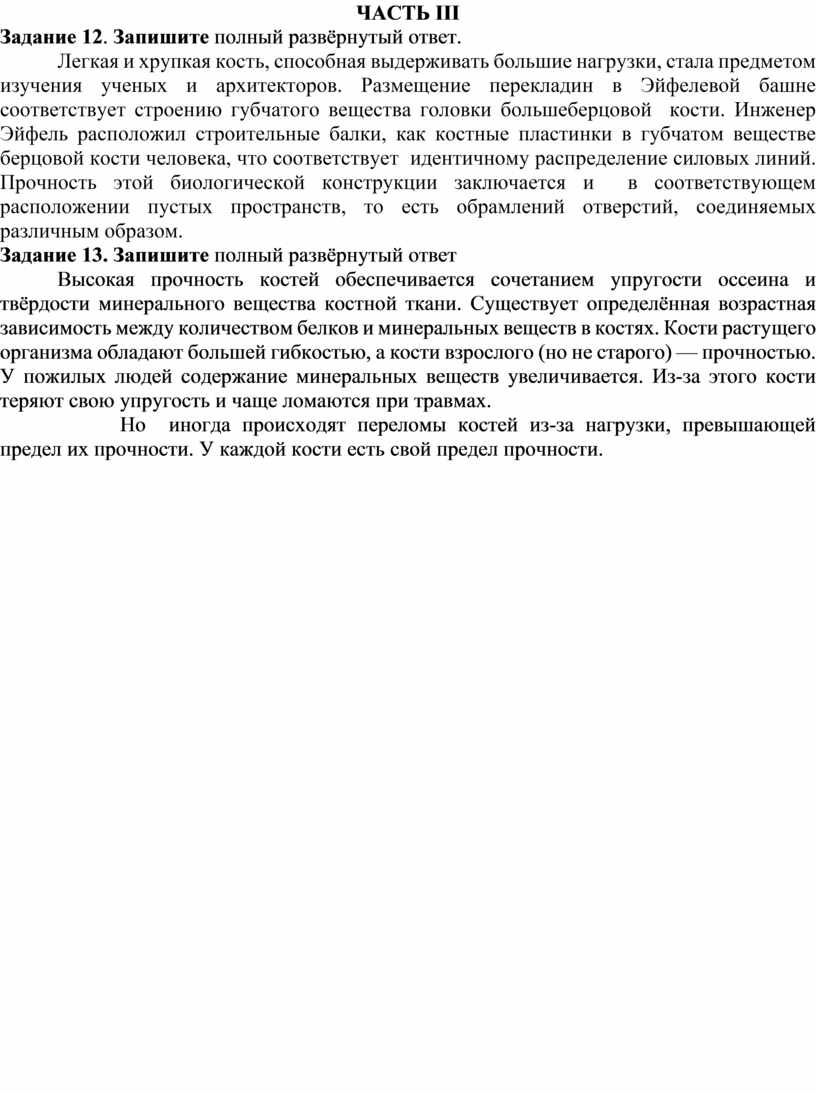 12. В 1889 году в Париже по проекту инженера Эйфеля была сооружена трёхсотметровая башня. Эта конструкция - яркий пример единства строения естественных и искусственных структур: распределение силовых линий в ней и в большой берцовой кости аналогично. Какую биологическую особенность строения кости использовал Эйфель при проектировании башни?