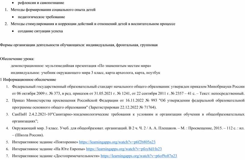 · Предметные: обучающиеся знают какие страны находятся на юге Европы, их характерные особенности (достопримечательности стран), умеют показывать границы стран на карте, знают в каких странах находятся знаменитые места мира, умеют показывать страны на карте, знают особенности знаменитых мест мира (страна, в которой расположена достопримечательность, год строительства).