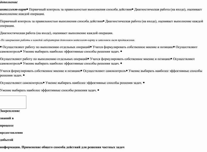 Переход к этапу частного решения задач, дополнение интеллект-карт |