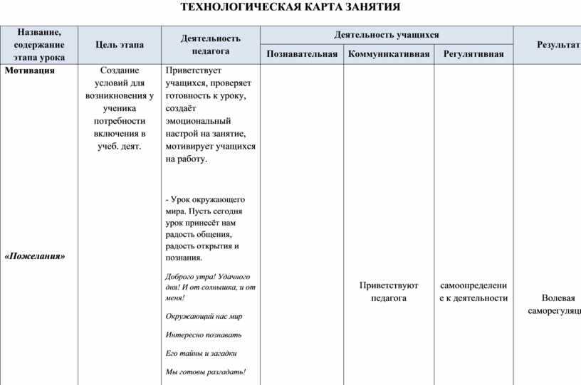 ТЕХНОЛОГИЧЕСКАЯ КАРТА ЗАНЯТИЯ