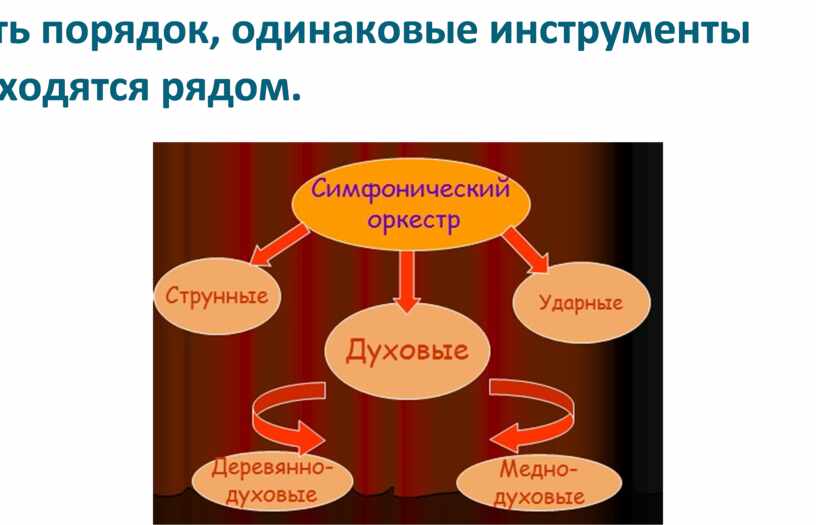 Составить названия музыкальных инструментов и разделить их на 2 группы( симфонический оркестр и народный оркестр).
