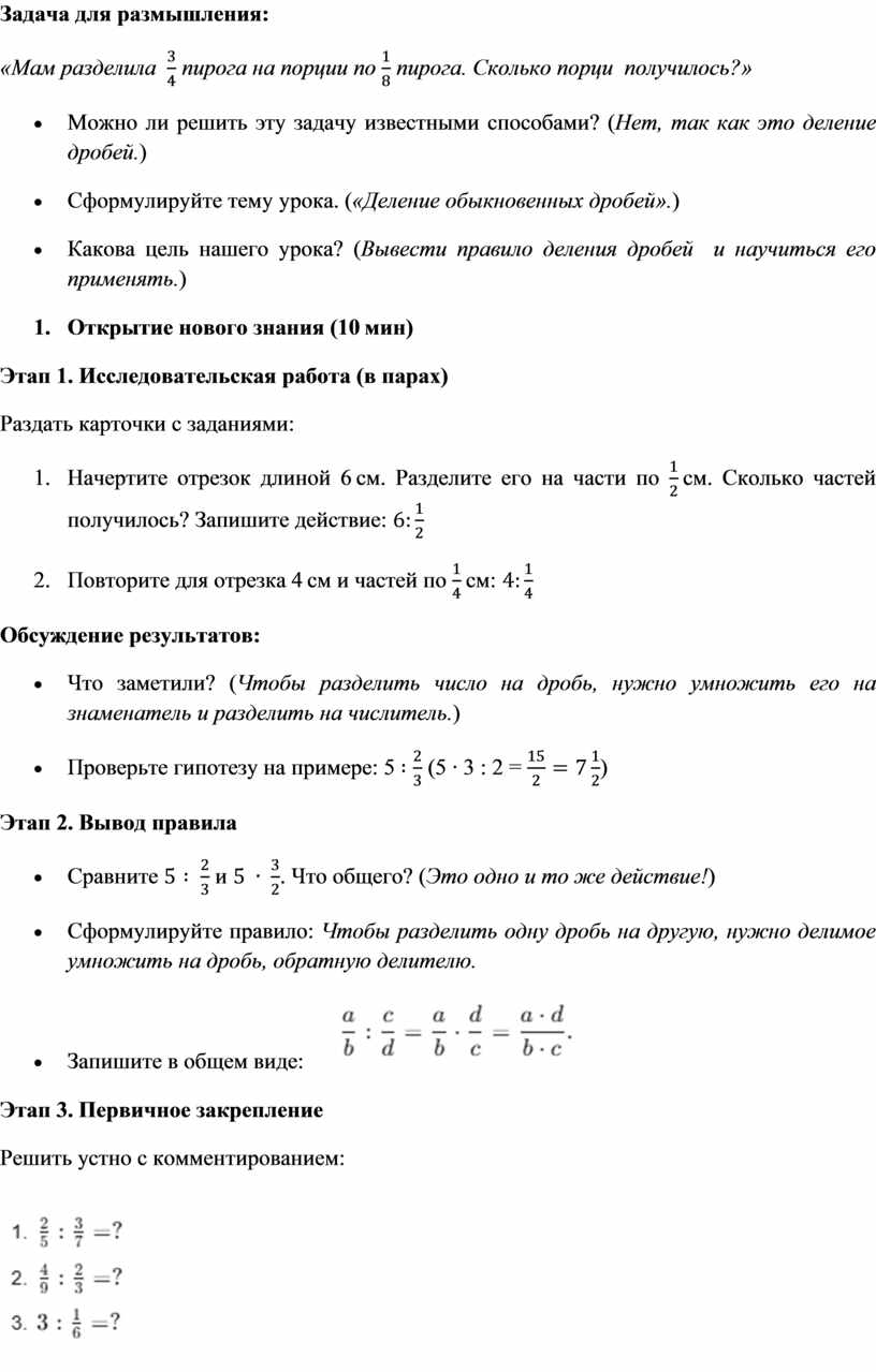 познакомить учащихся с правилом деления обыкновенных дробей, сформировать