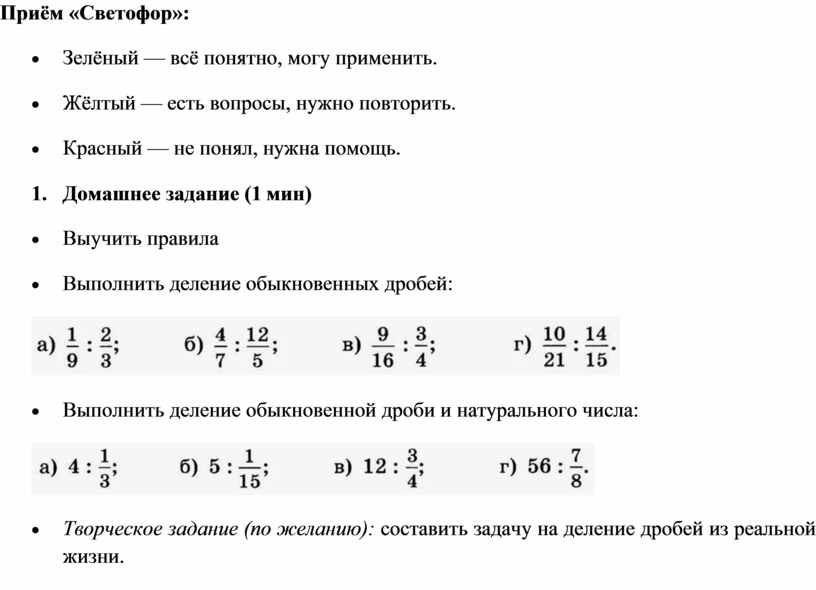 вывести правило деления обыкновенных дробей и сформировать умение применять его
