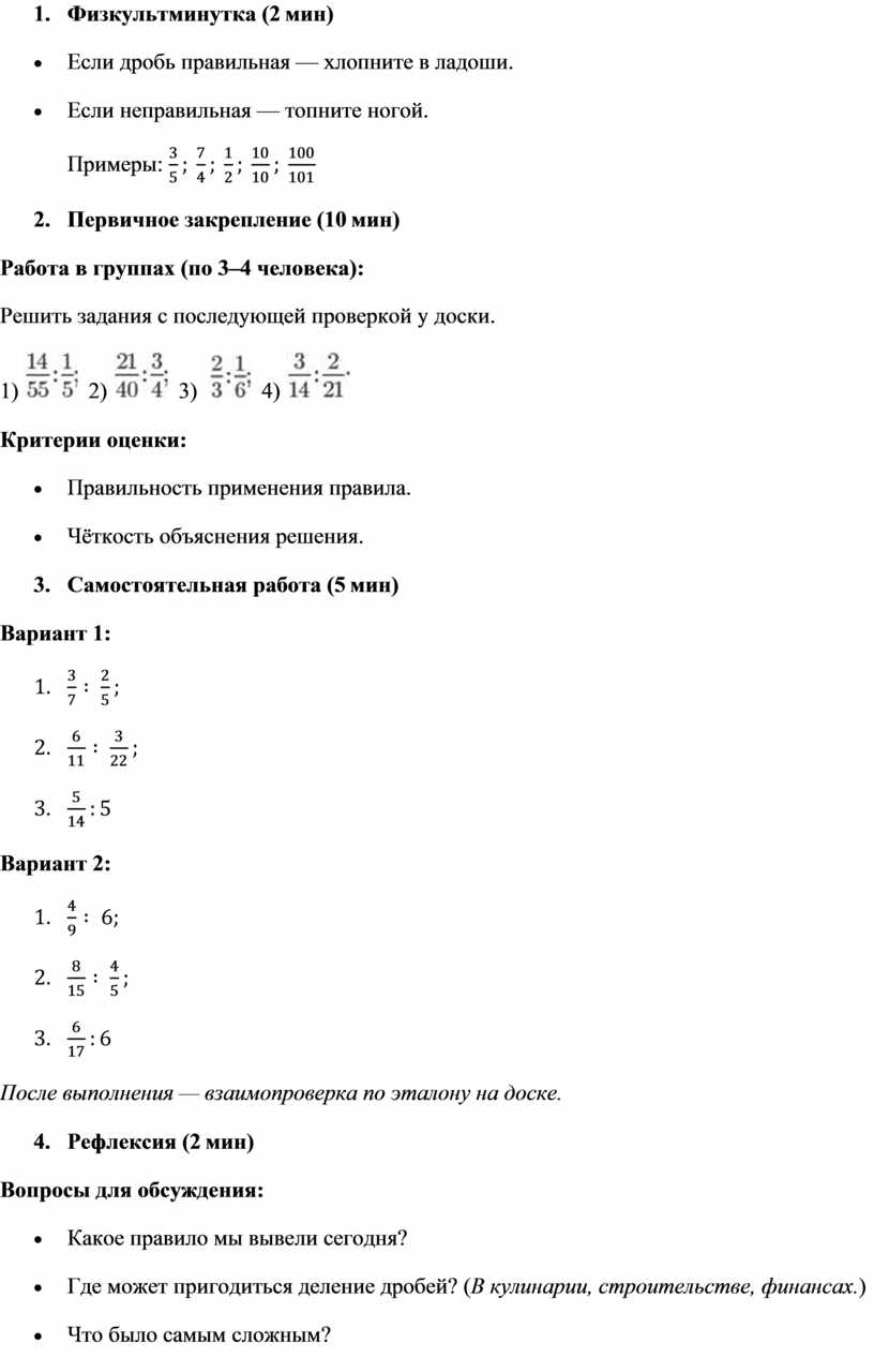 настроя: «Сегодня мы отправимся в путешествие по стране Дробей. Нас ждёт