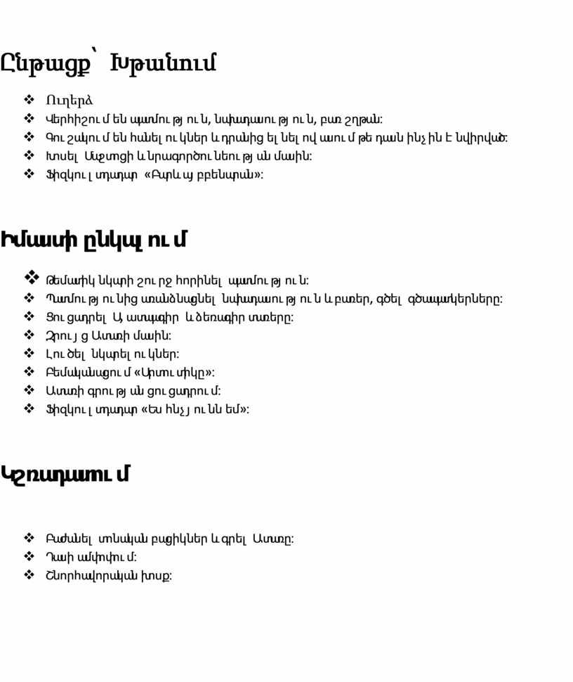ü Ամրապնդել պատմության, նախադասության, բառի, վանկի, հնչյունի մասին ունեցած գիտելիքները:
