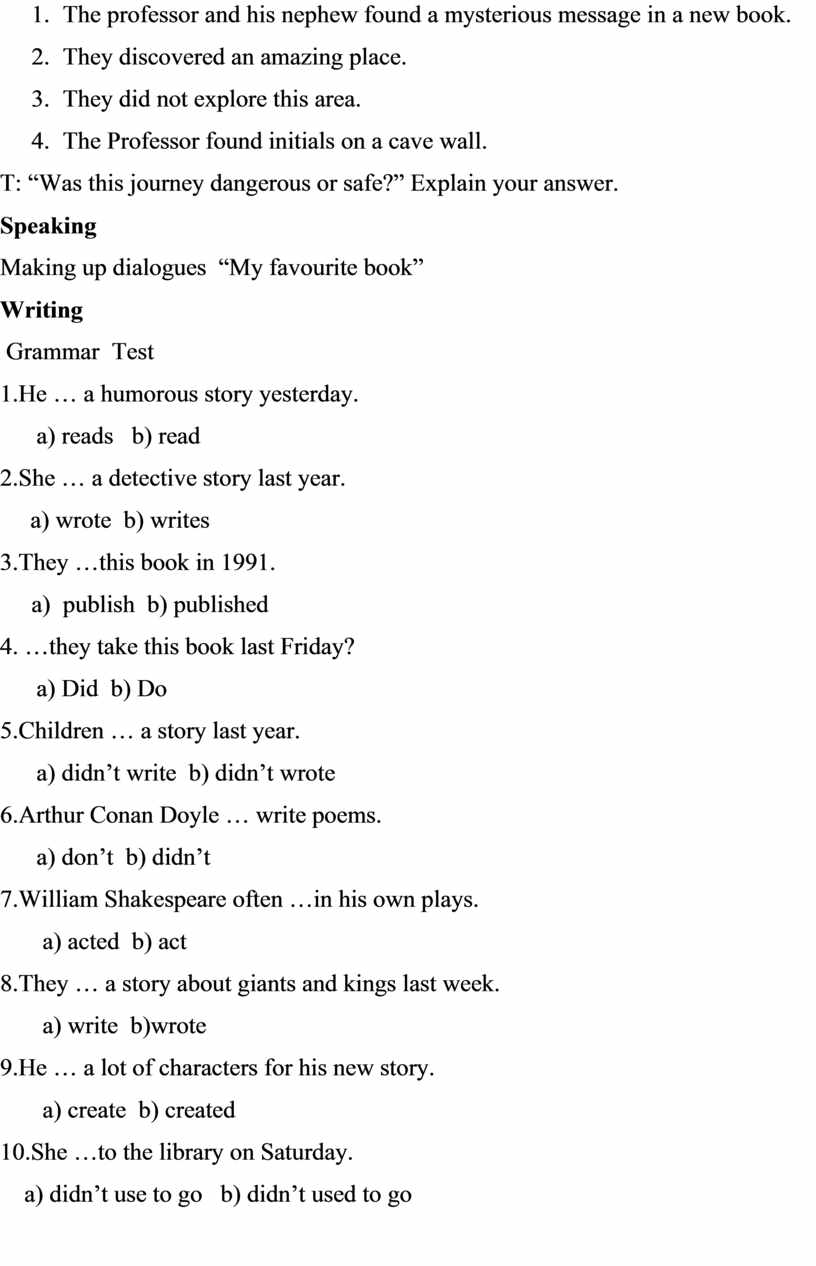 Reading “ A classic read” \“Journey to the Centre of the Earth ” (ex. 1, p. 18).