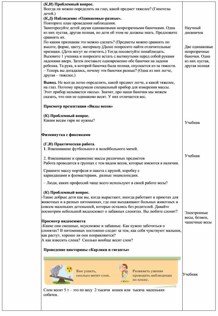 Иконка файла материала Урок по естествознанию Сколько весит слон.docx