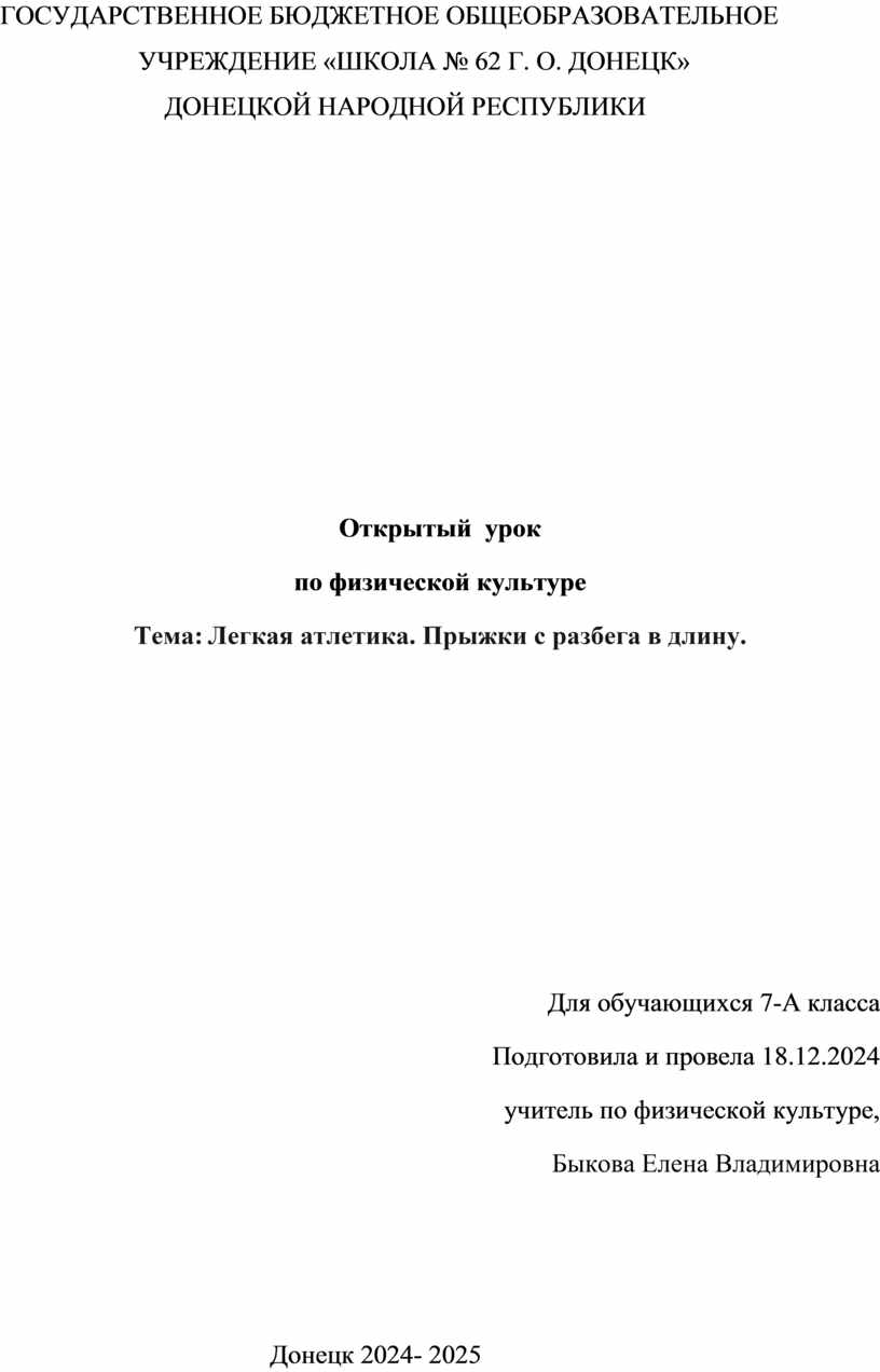 УЧРЕЖДЕНИЕ «ШКОЛА № 62 Г. О. ДОНЕЦК»