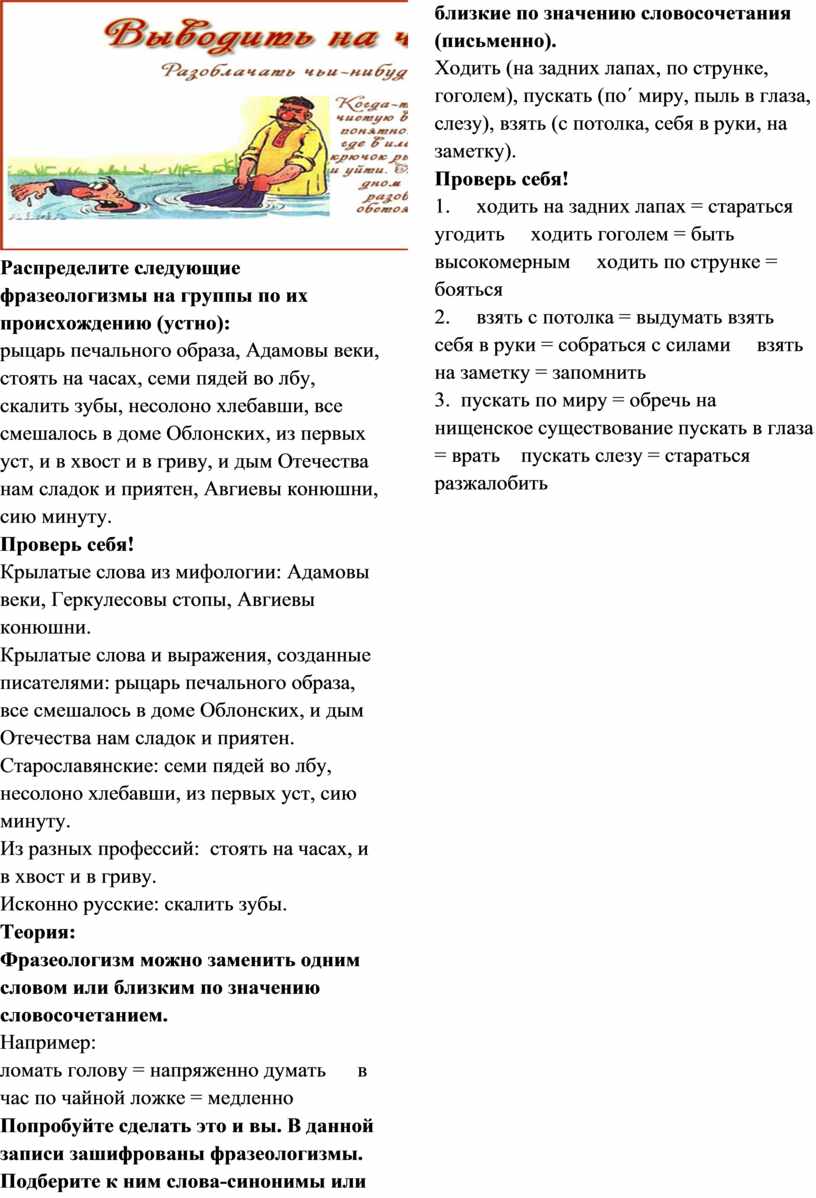 1. Выписать из текста все фразеологизмы, написать их значение.