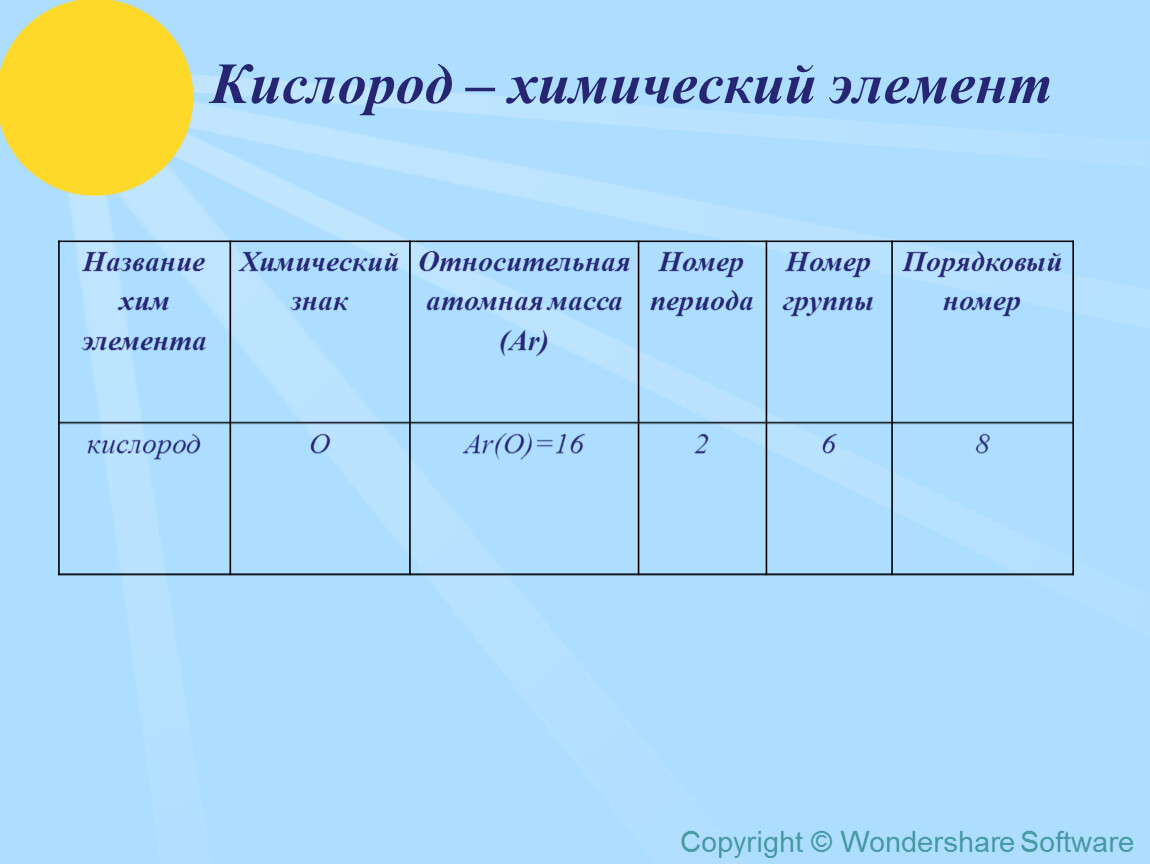 кислород | О | Аr(О)=16 | 2 | 6 | 8 |