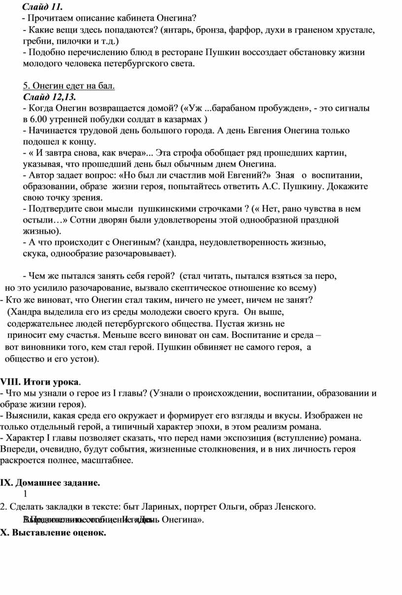 - будем работать над образом Евгения Онегина, понаблюдаем над жизнью дворянской интеллигенции;