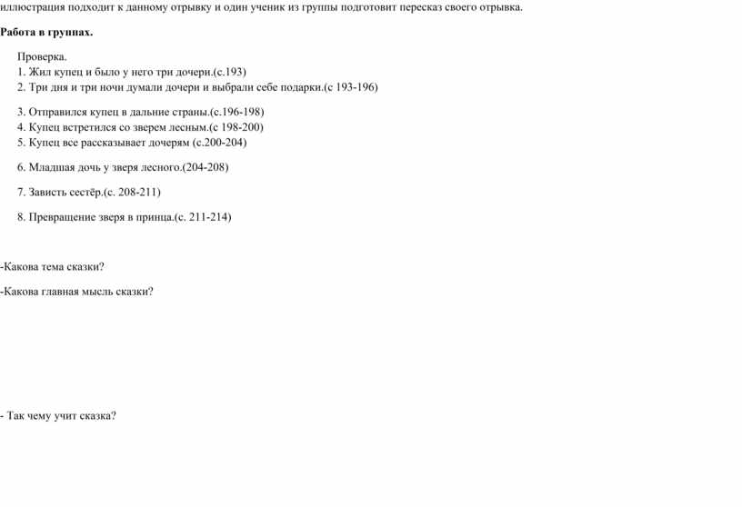 3 часть: Начинает читать... -Что случилось после того, как был сорван цветок? -Как должен был быть наказан купец? -Какое условие поставило чудище? Что оно хотело?