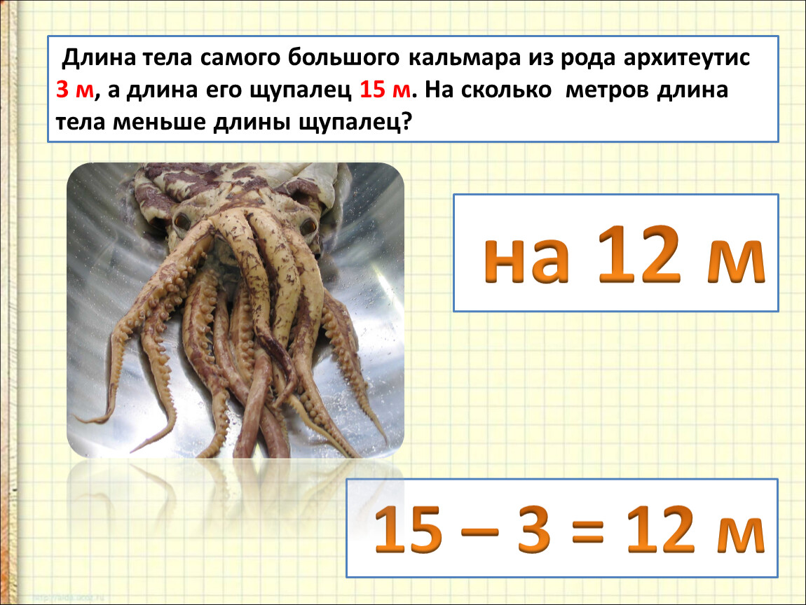 3 м, а длина его щупалец 15 м. На сколько метров длина