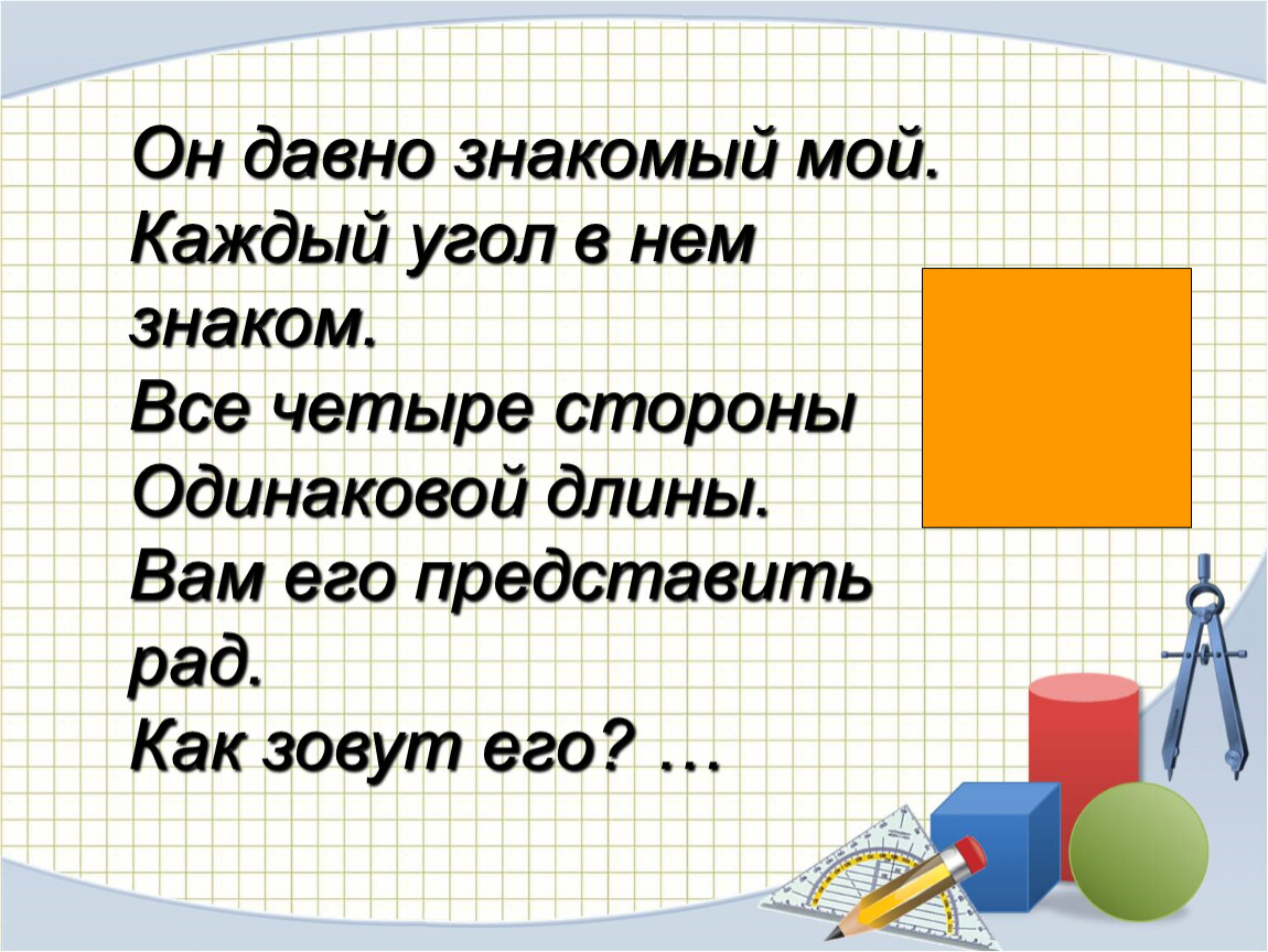 Сегодня на уроке мы познакомимся с квадратом