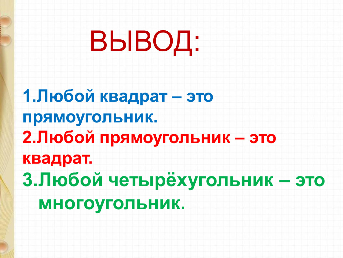 1.Любой квадрат – это прямоугольник.