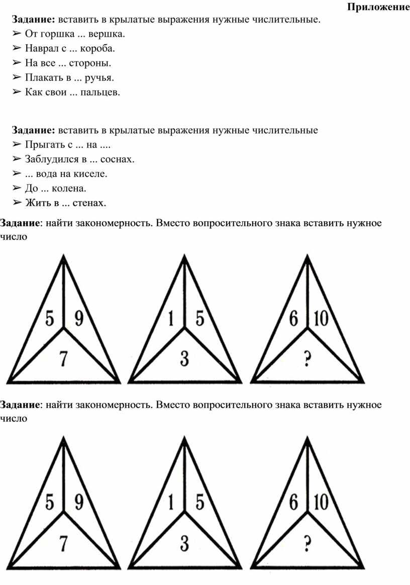 Задание: найти закономерность. Вместо вопросительного знака вставить нужное число.
