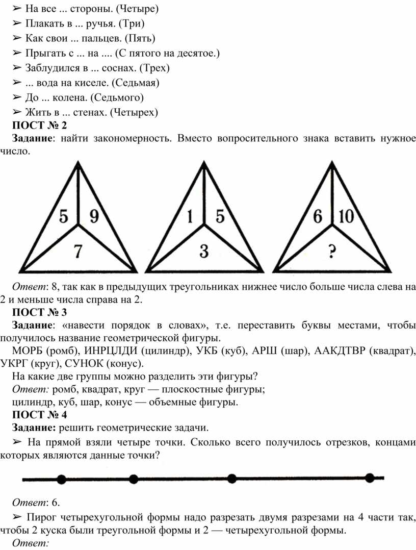 Задание: «навести порядок в словах», т.е. переставить буквы местами, чтобы получилось название геометрической фигуры.