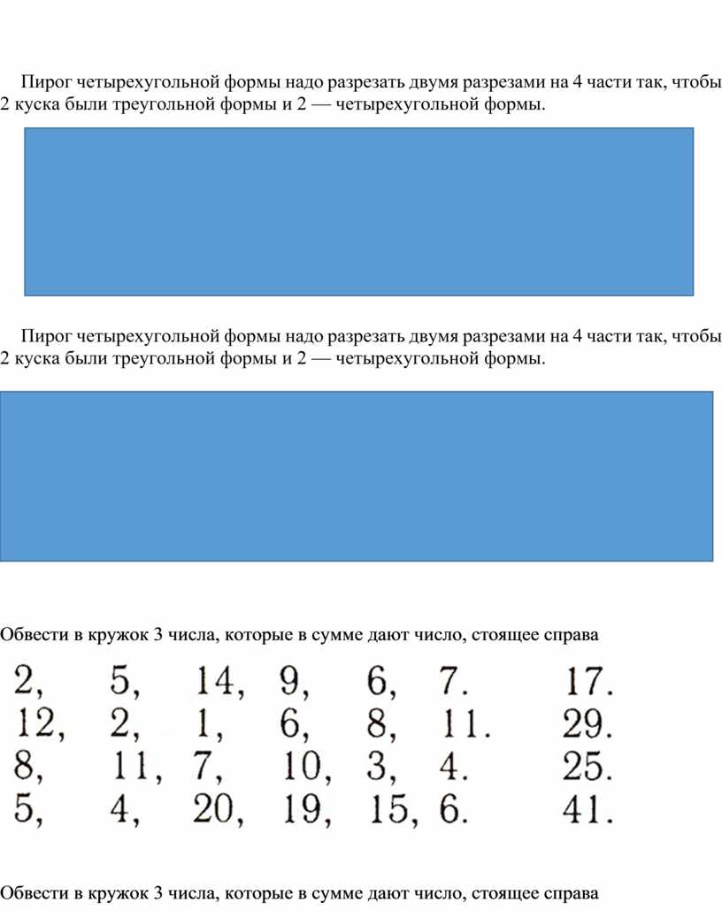 Обвести в кружок 3 числа, которые в сумме дают число, стоящее справа