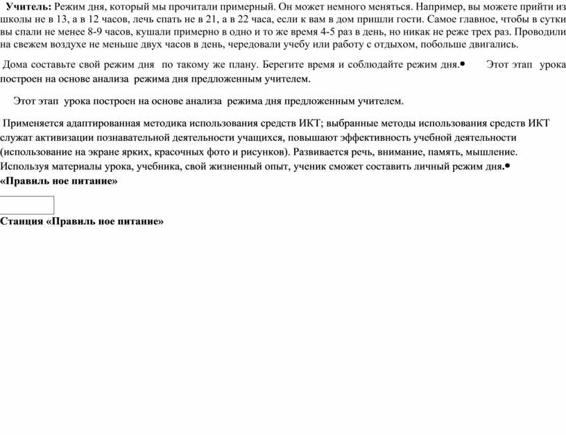 Станция «Режим дня» |
