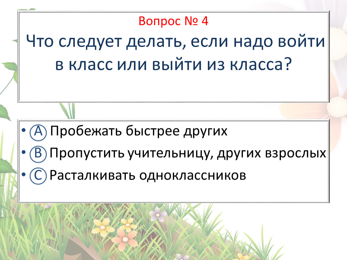 Вопрос № 4 Что следует делать, если надо войти в класс или выйти из класса?
