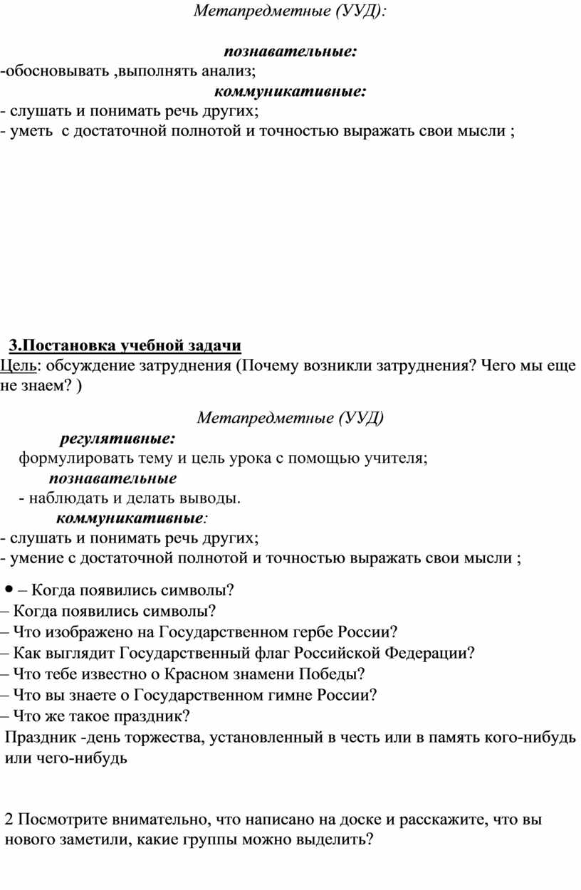 Метапредметные (УУД): регулятивные: - осуществлять самоконтроль; - совместно с учителем и одноклассниками давать оценку деятельности на уроке; - выделять и осознавать то, что уже усвоено;