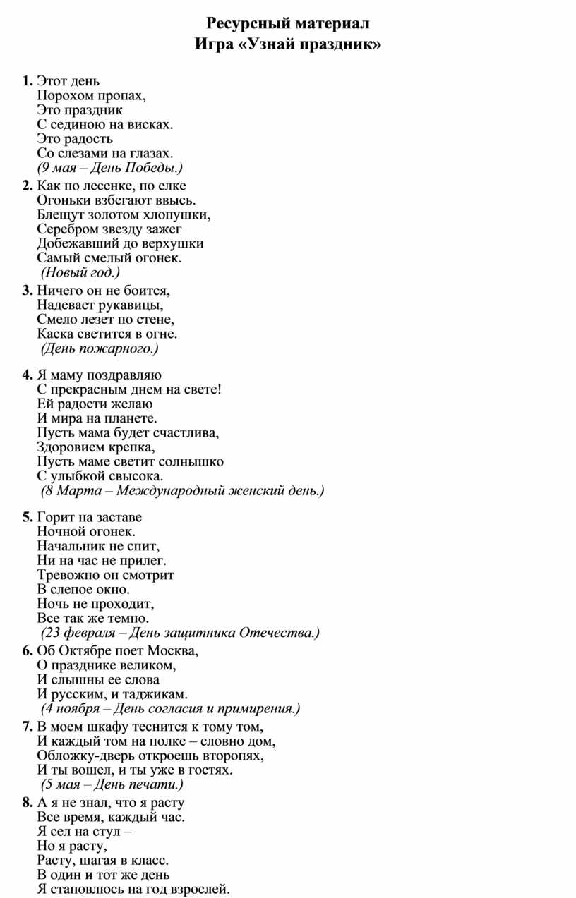 Игра «Узнай праздник»