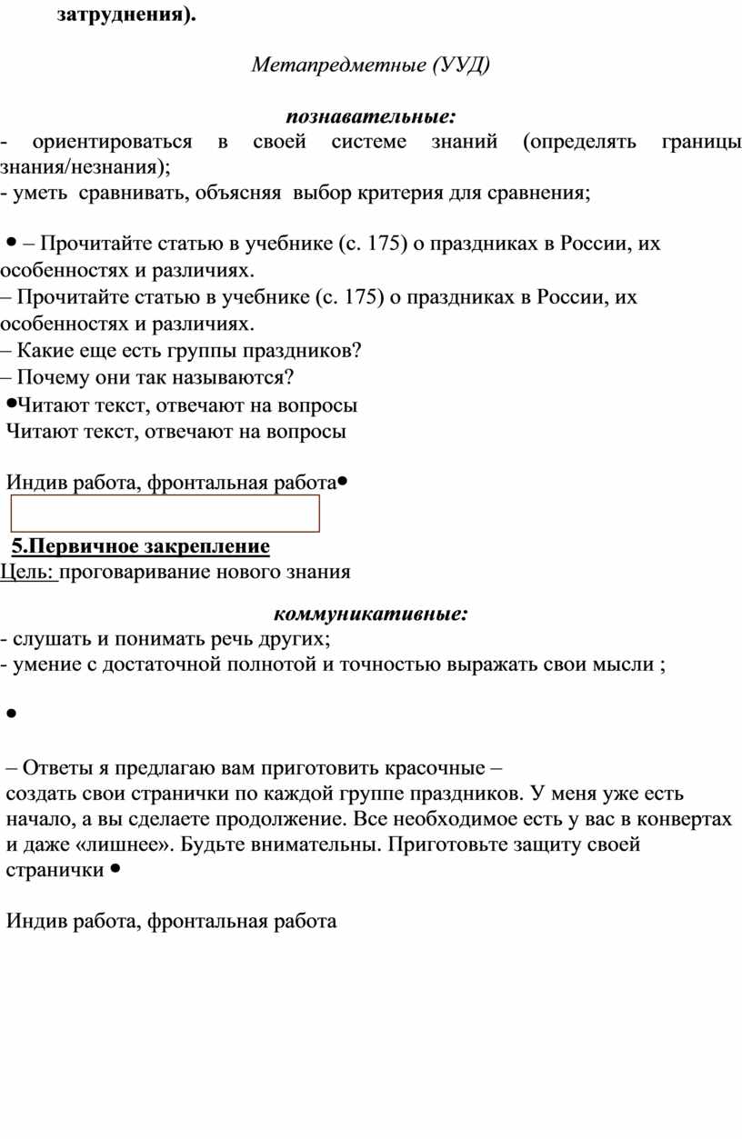 Индив работа, фронтальная работа