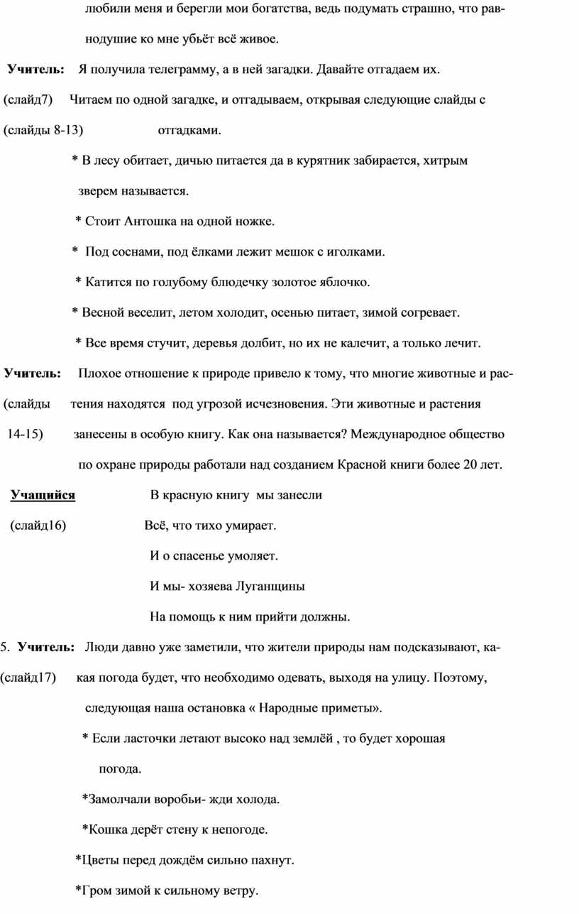 Учитель: Плохое отношение к природе привело к тому, что многие животные и рас-
