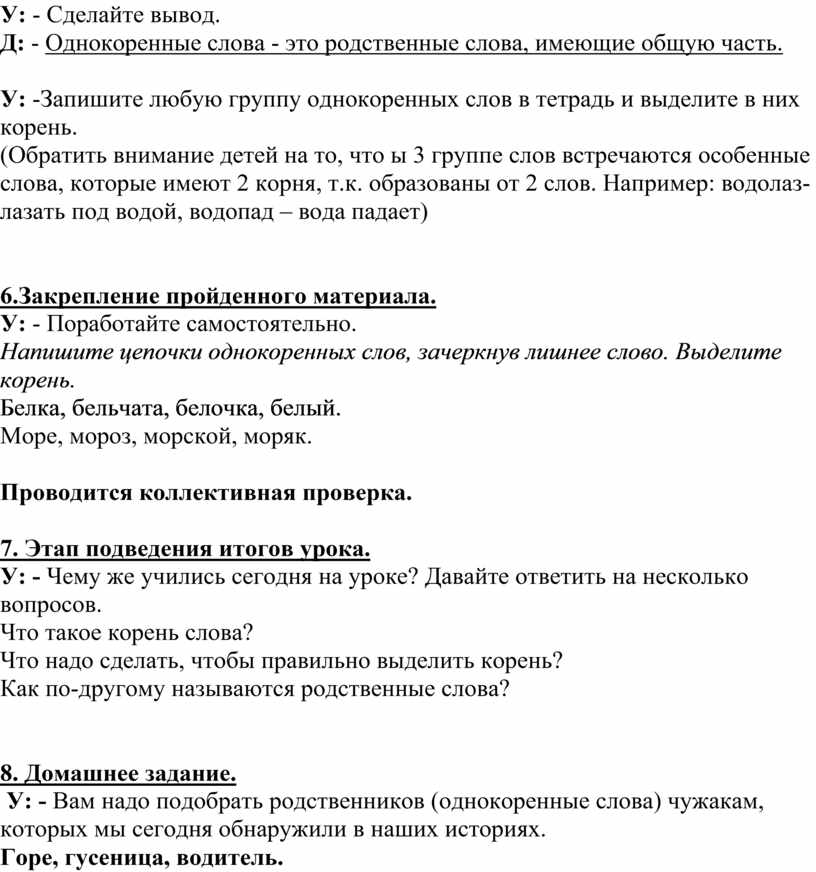 У: - Подумайте, можно дать другое название словам, образованным от одного и того же корня?