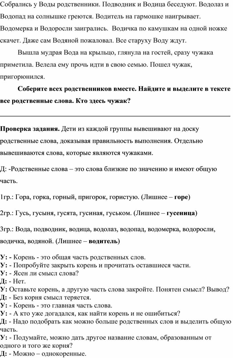 всех родственников вместе. Найдите и выделите в тексте все родственные слова. Кто здесь чужак?