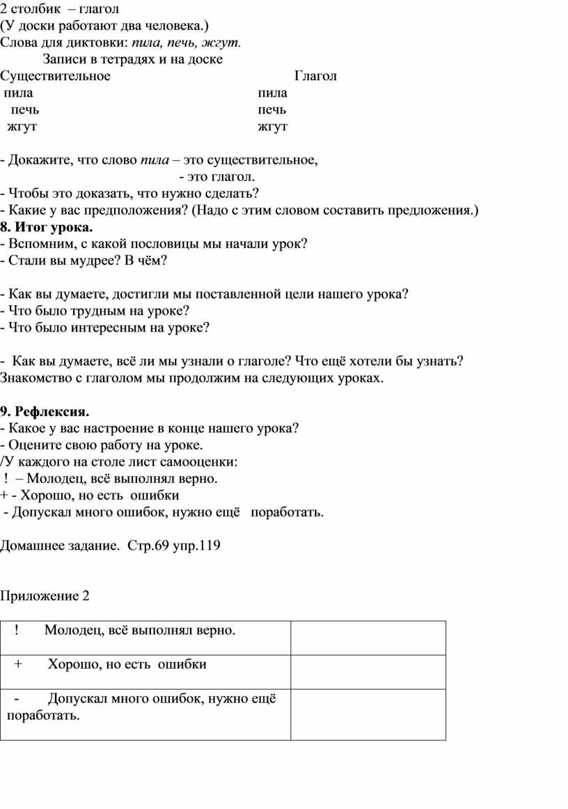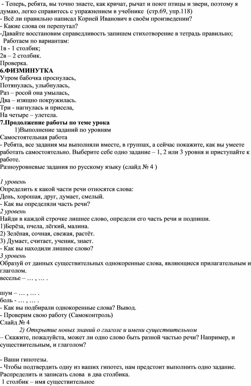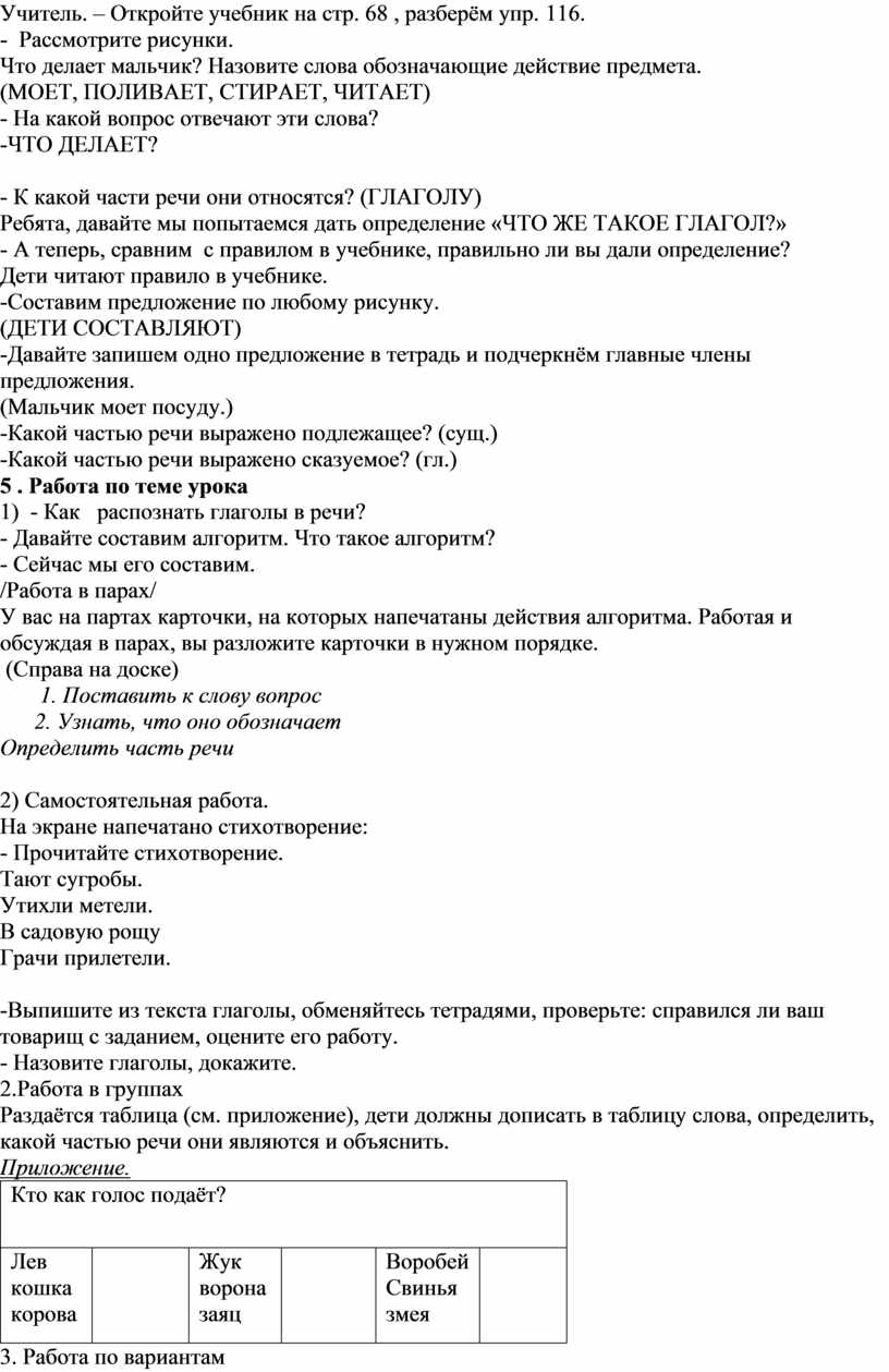 Цель: познакомить с частью речи – глаголом, его отличительными признаками.