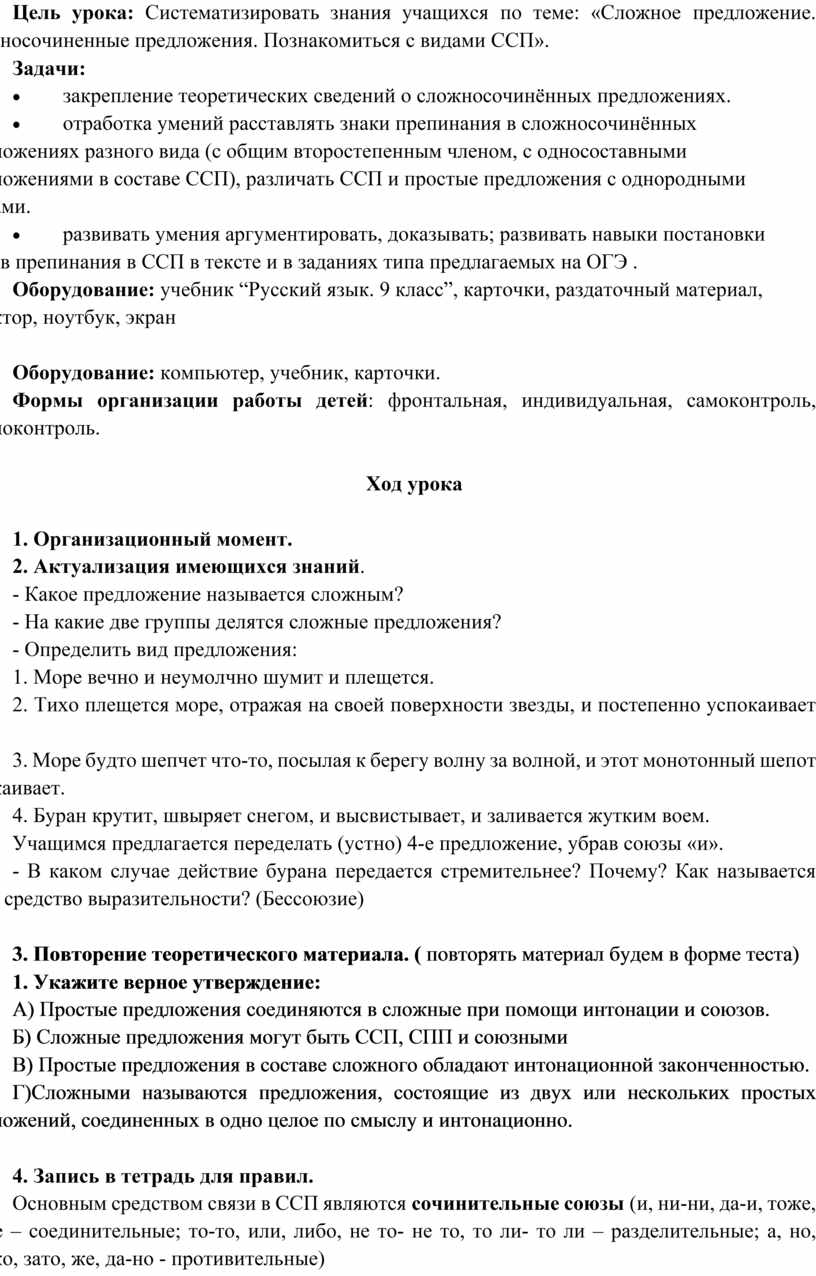 · закрепление теоретических сведений о сложносочинённых предложениях.