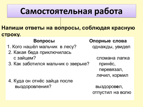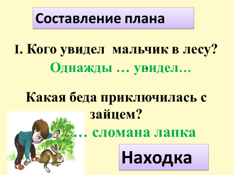 I. Кого увидел мальчик в лесу? . Какая беда приключилась с зайцем?