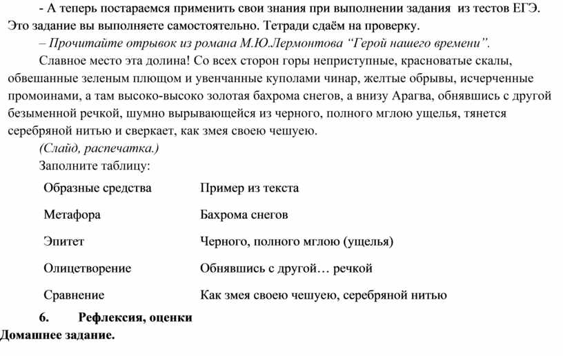 – Прочитайте отрывок из романа М.Ю.Лермонтова “Герой нашего времени”.