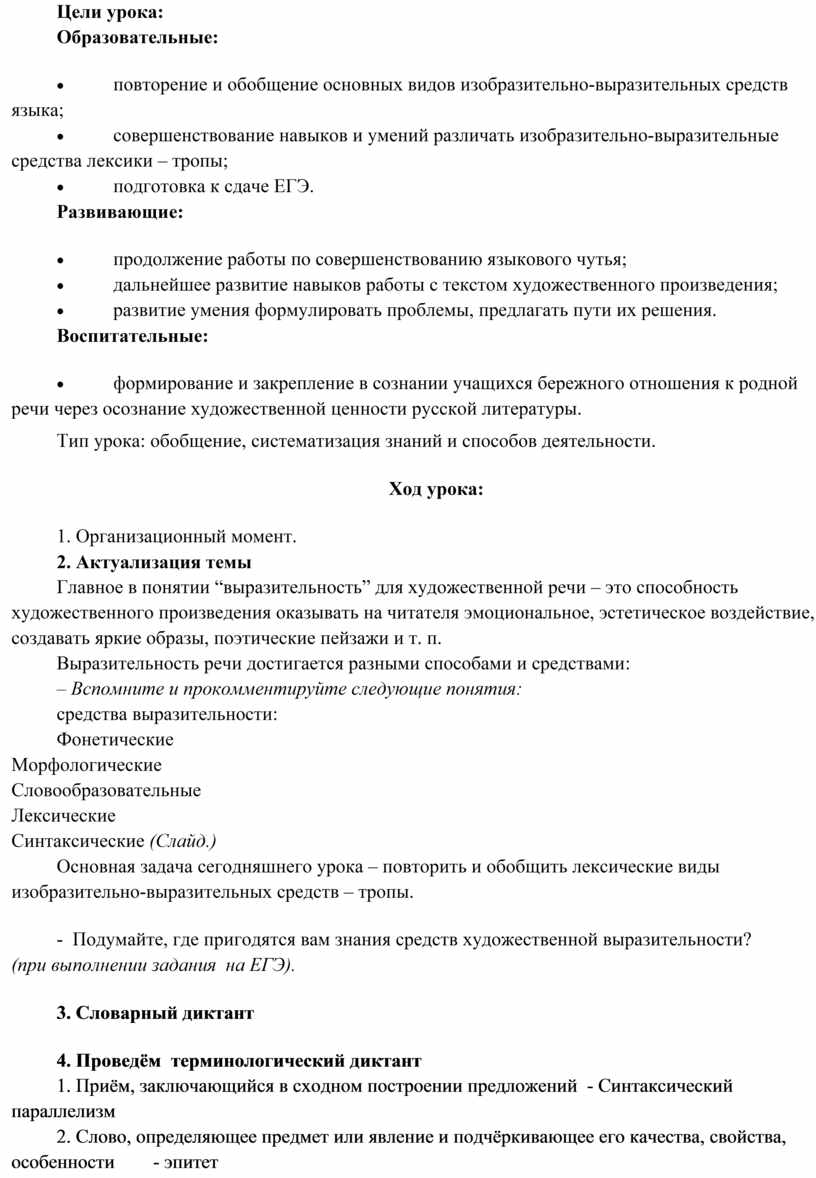 · совершенствование навыков и умений различать изобразительно-выразительные средства лексики – тропы;