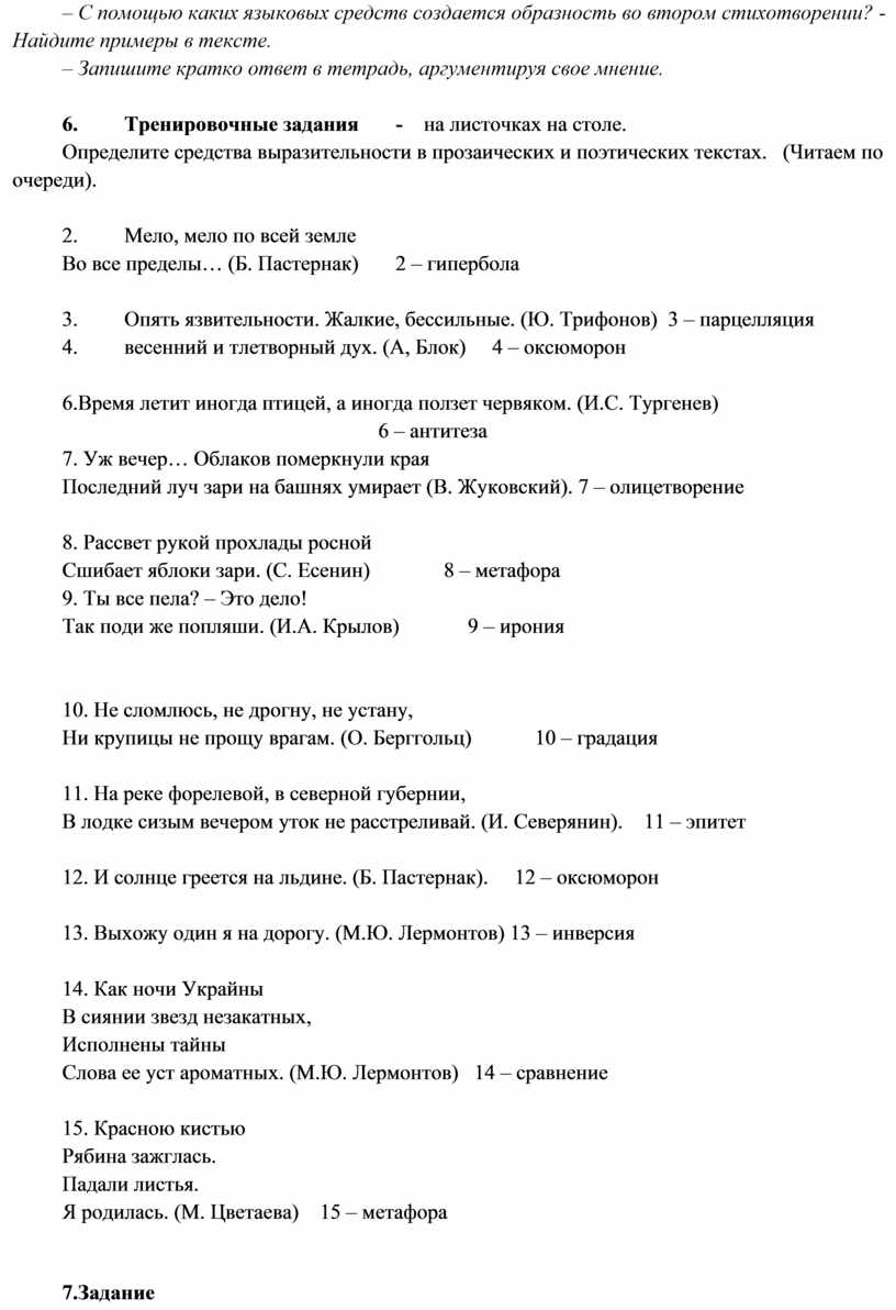 Определите средства выразительности в прозаических и поэтических текстах. (Читаем по очереди).