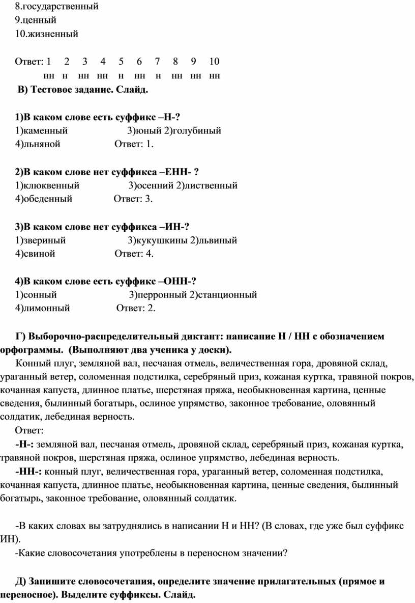 -В каких словах вы затруднялись в написании Н и НН? (В словах, где уже был суффикс ИН).
