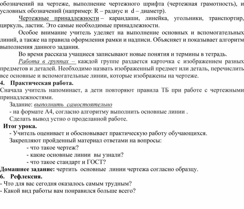 - основные линии и требования к чертежам.