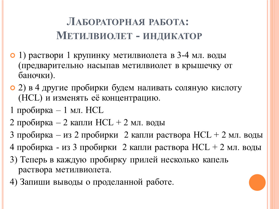 Лабораторная работа: Метилвиолет - индикатор