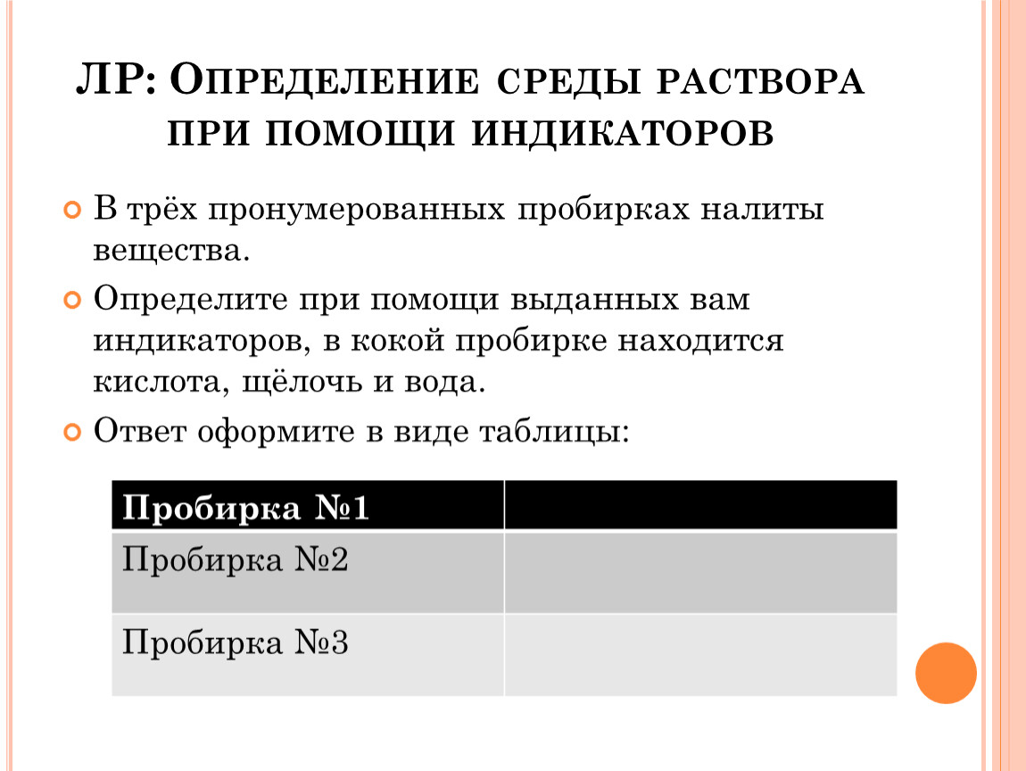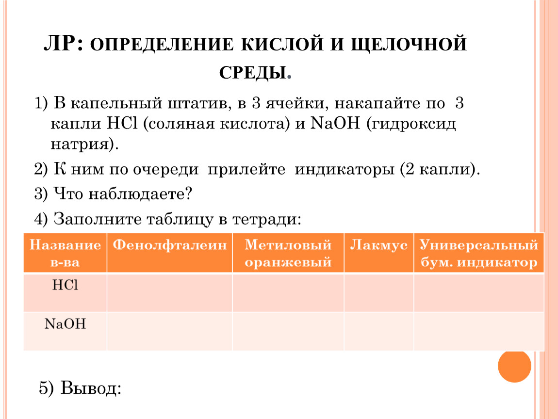ЛР: определение кислой и щелочной среды.