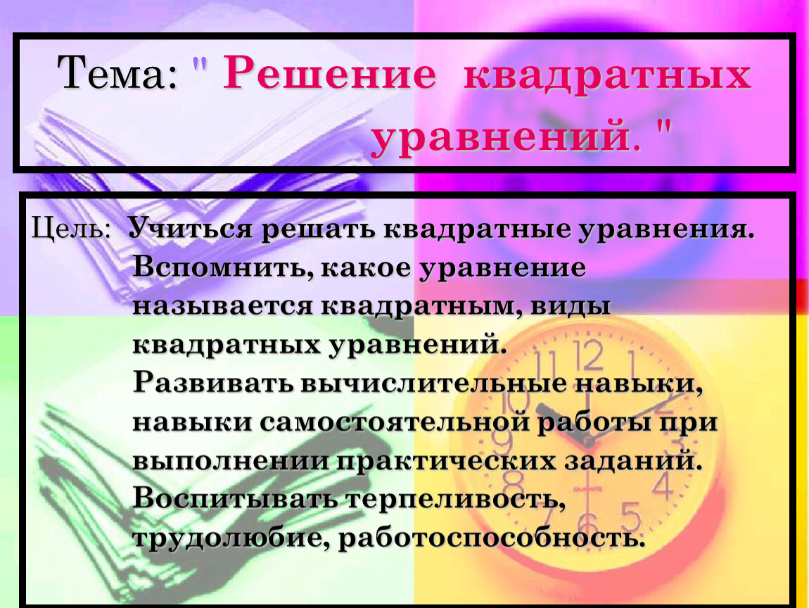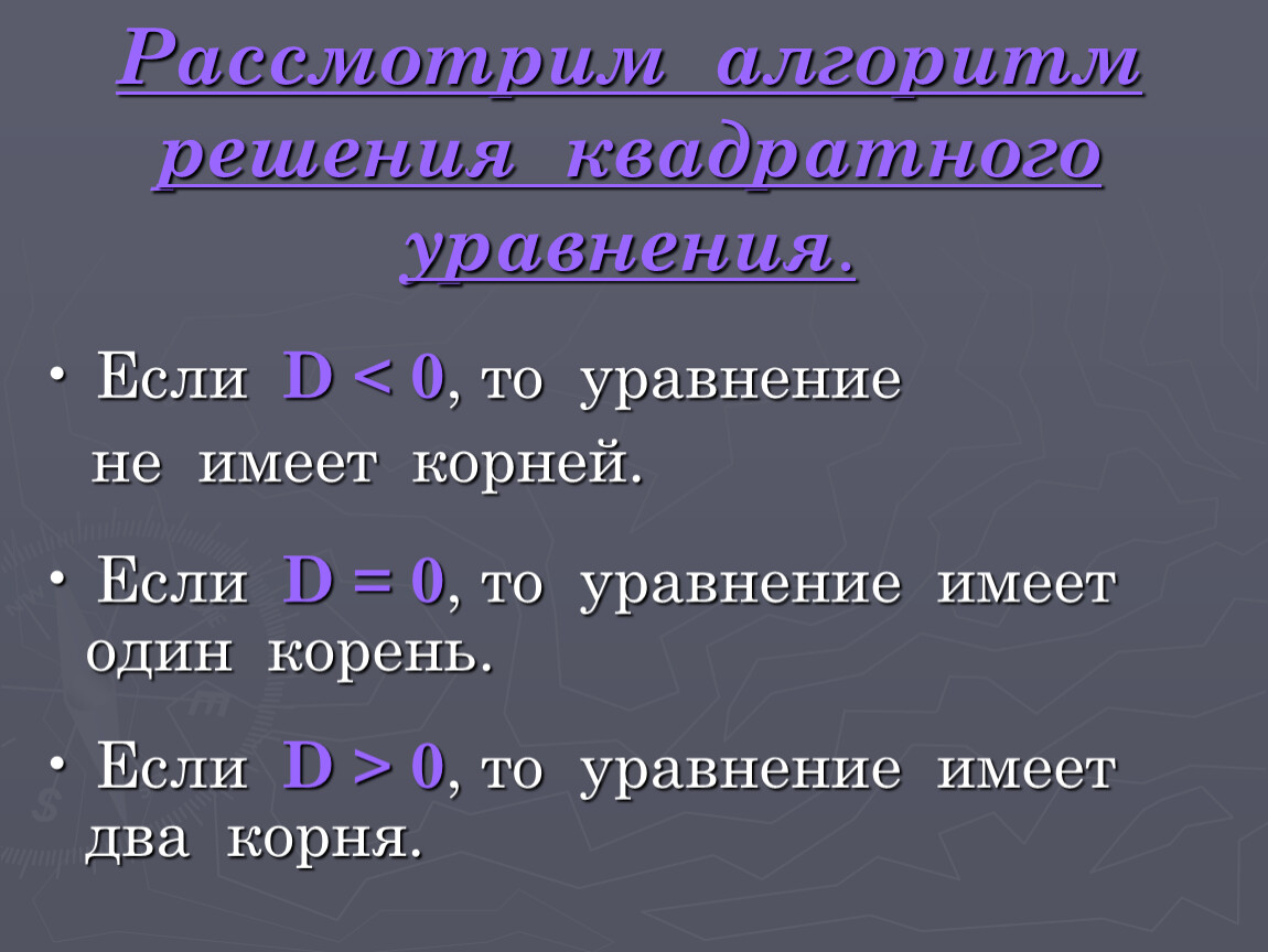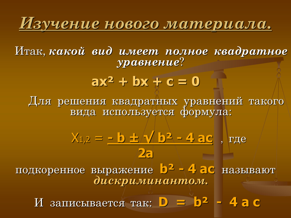 ax² + bx + c = 0, где a, b, c - заданные числа, причём