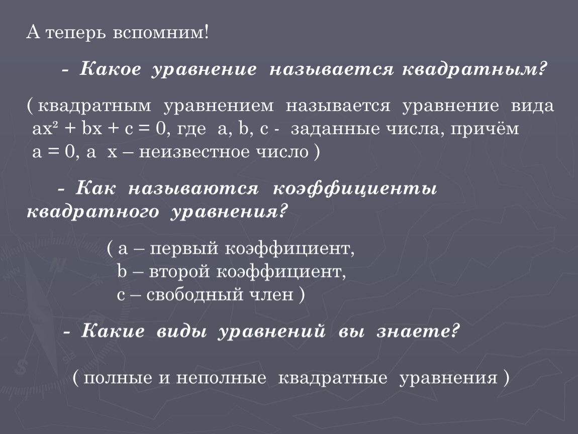 Посмотрите на уравнения и назовите полные квадратные уравнения.