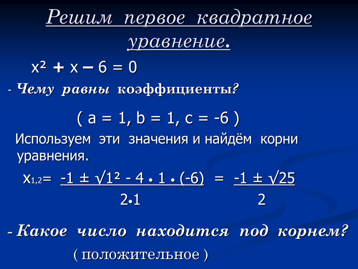 х1,2= -1 ± √1² - 4 • 1 • (-6) = -1 ± √25