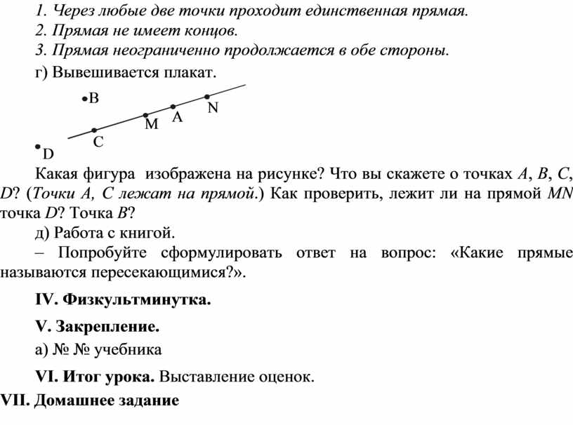 Какая фигура изображена на рисунке? Что вы скажете о точках А, В, С, D? (Точки А, С лежат на прямой.) Как проверить, лежит ли на прямой MN точка D? Точка В?