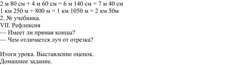 — Решив все примеры и расположив ответы в порядке возрастания, вы сможете прочитать три слова, которые являются темой нашего урока. (Плоскость, прямая, луч.)