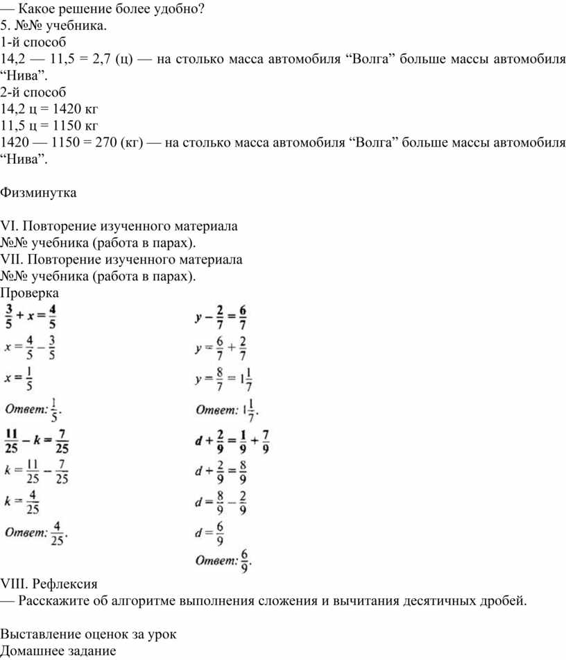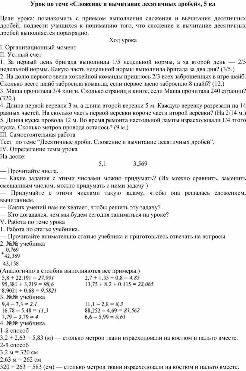 Урок по теме «Сложение и вычитание десятичных дробей», 5 кл