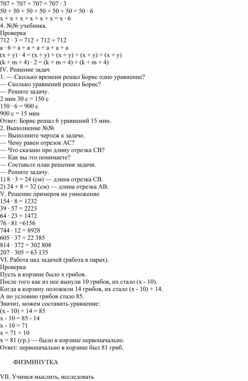 V. Решение примеров на умножение